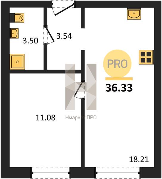 Квартира: 1 к 36,33 кв.м., 19 этаж в комплексе Эхо леса, 1 очередь, корп.1, сдача: 1кв. , этажей: 22, адрес Екатеринбург г., Владимира Букина ул., , Застройщик: ГК Север.