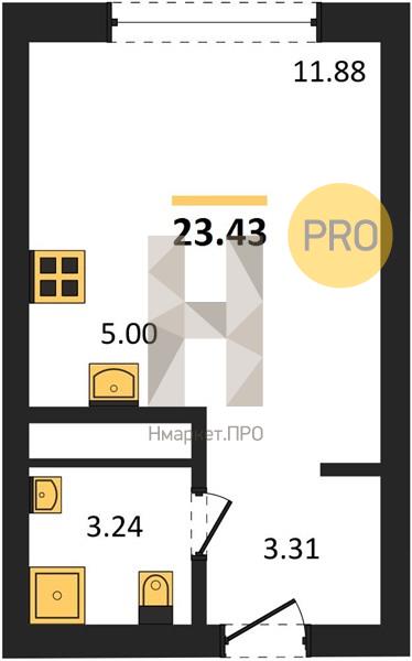 Студия: 23,43 кв.м., 5 этаж в комплексе Эхо леса, 1 очередь, корп.1, сдача: 1кв. , этажей: 22, адрес Екатеринбург г., Владимира Букина ул., , Застройщик: ГК Север.