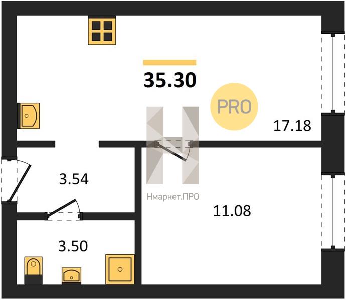Купить 1-комнатную квартиру, 35.30 м2 № 7227779