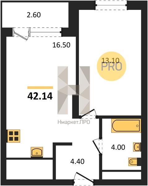 Квартира: 1 к 42,14 кв.м., 2 этаж в комплексе Парк Каменные Палатки, 4 очередь, корп.3, сдача: 4кв. , этажей: 25, адрес Екатеринбург г., Владимира Высоцкого ул., , Застройщик: BAZA Development.