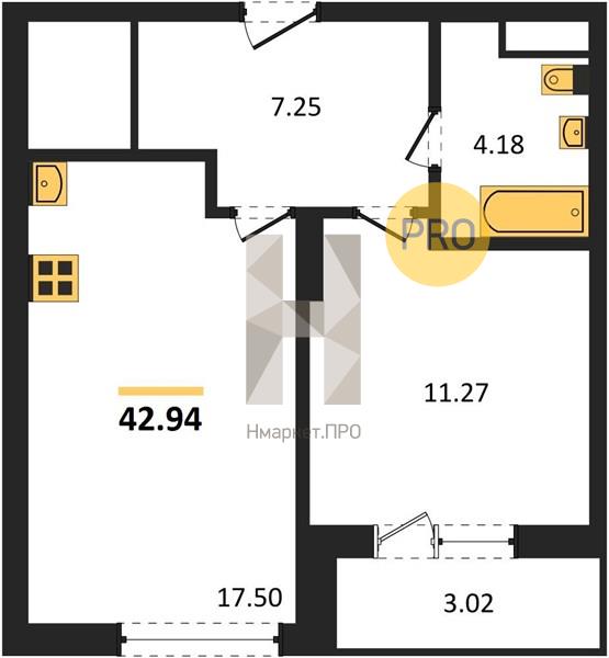 Квартира: 1 к 42,94 кв.м., 19 этаж в комплексе Парк Каменные Палатки, 4 очередь, корп.16, сдача: 3кв. , этажей: 32, адрес Екатеринбург г., Владимира Высоцкого ул., , Застройщик: BAZA Development.