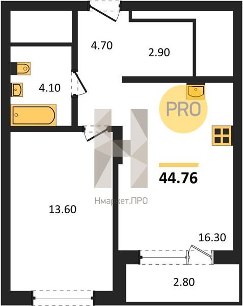 Квартира: 1 к 44,76 кв.м., 25 этаж в комплексе Парк Каменные Палатки, 4 очередь, корп.3, сдача: 4кв. , этажей: 25, адрес Екатеринбург г., Владимира Высоцкого ул., , Застройщик: BAZA Development.