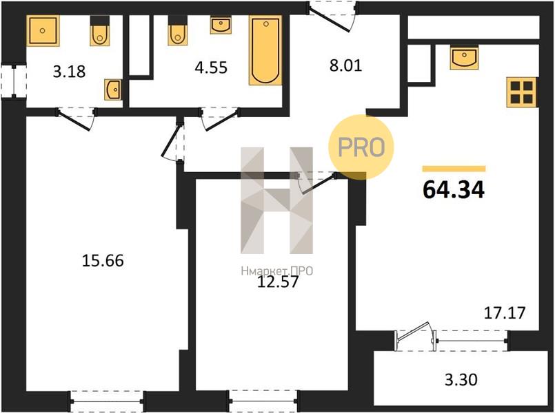 | Общая площадь: | 64.34 м2 |