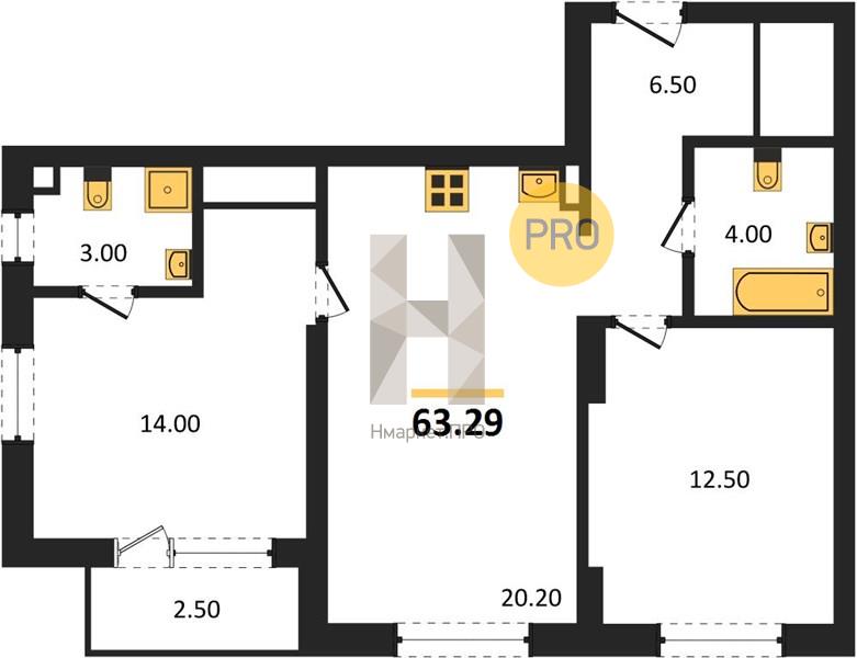 Квартира: 2 к 63,29 кв.м., 8 этаж в комплексе Парк Каменные Палатки, 4 очередь, корп.3, сдача: 4кв. , этажей: 25, адрес Екатеринбург г., Владимира Высоцкого ул., , Застройщик: BAZA Development.