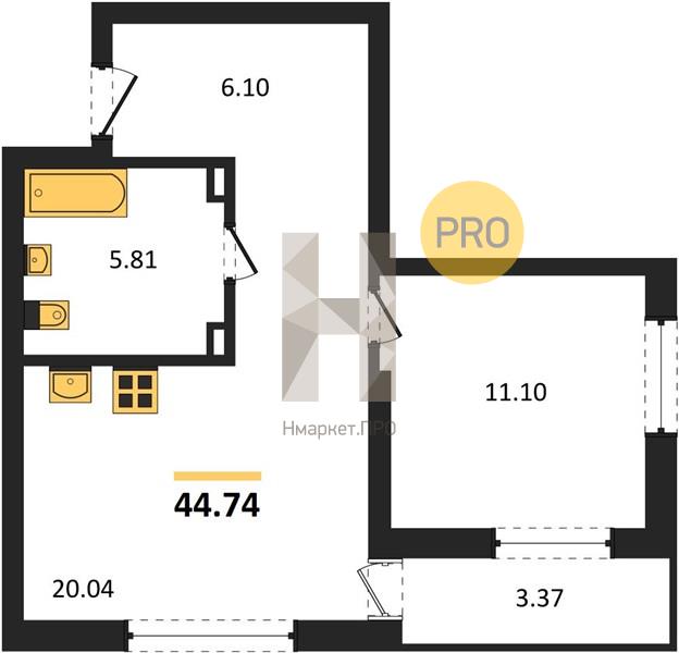 Квартира: 1 к 44,74 кв.м., 16 этаж в комплексе Московский квартал, 6 очередь, корп.12, сдача: 4кв. , этажей: 17, адрес Екатеринбург г., Военного Флота ул., , Застройщик: Московский квартал.