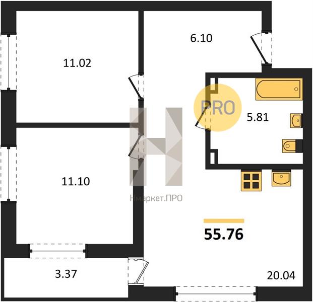 Квартира: 2 к 55,76 кв.м., 17 этаж в комплексе Московский квартал, 6 очередь, корп.12, сдача: 4кв. , этажей: 17, адрес Екатеринбург г., Военного Флота ул., , Застройщик: Московский квартал.