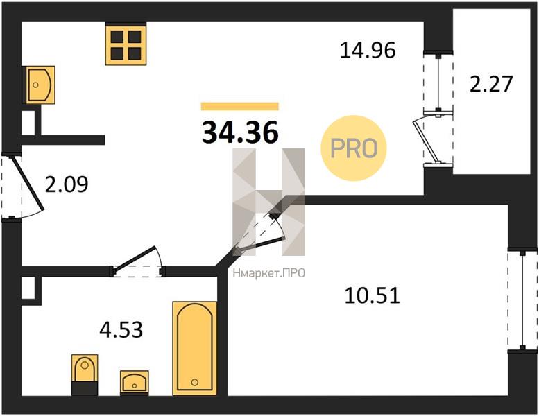 Квартира: 1 к 34,36 кв.м., 4 этаж в комплексе Московский квартал, 6 очередь, корп.12, сдача: 4кв. , этажей: 17, адрес Екатеринбург г., Военного Флота ул., , Застройщик: Московский квартал.