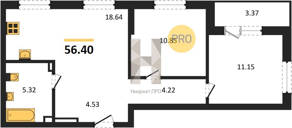 | Общая площадь: | 56.40 м2 |