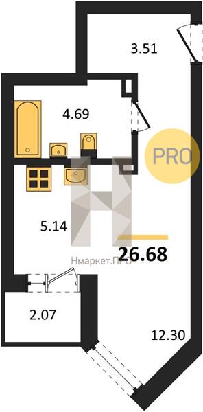 | Общая площадь: | 26.68 м2 |