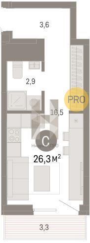Студия: 26,30 кв.м., 4 этаж в комплексе Северный Квартал, 5 очередь, корп.Урбан-Вилла 2, сдача: 3кв. , этажей: 8, адрес Екатеринбург г., Войкова ул., , Застройщик: Брусника.