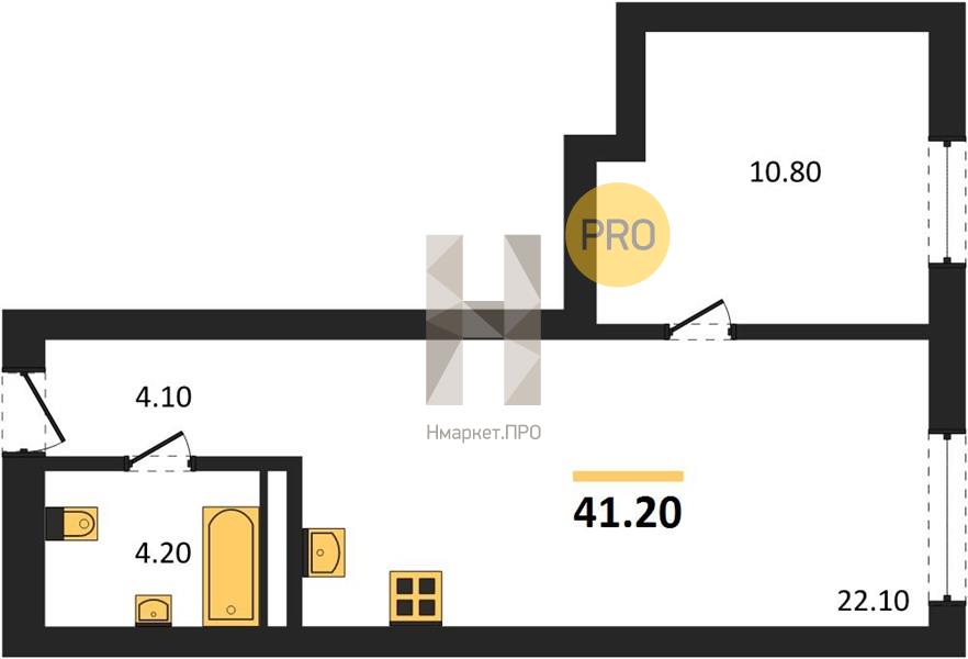 Квартира: 1 к 41,20 кв.м., 2 этаж в комплексе Северный Квартал, 5 очередь, корп.Урбан-вилла 6, сдача: 3кв. , этажей: 9, адрес Екатеринбург г., Войкова ул., , Застройщик: Брусника.