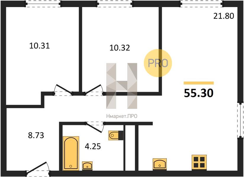 | Общая площадь: | 55.30 м2 |