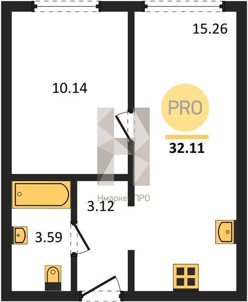 Квартира: 1 к 32,08 кв.м., 22 этаж в комплексе Progress Встречный, 1 очередь, корп.1 (секция 1), сдача: 1кв. , этажей: 24, адрес Екатеринбург г., Встречный пер., , Застройщик: Прогресс.