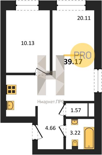 Квартира: 1 к 39,17 кв.м., 4 этаж в комплексе Progress Встречный, 1 очередь, корп.1 (секция 2), сдача: 1кв. , этажей: 20, адрес Екатеринбург г., Встречный пер., , Застройщик: Прогресс.