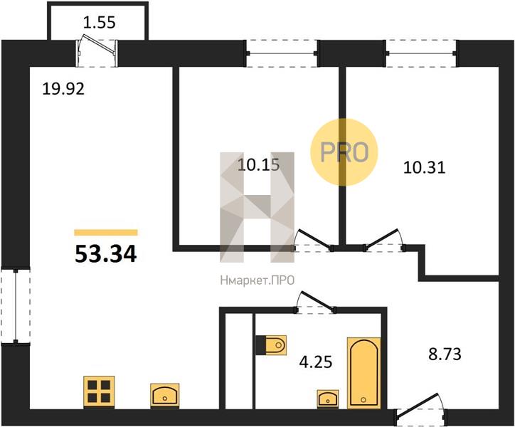 Квартира: 2 к 53,34 кв.м., 6 этаж в комплексе Progress Встречный, 1 очередь, корп.1 (секция 2), сдача: 1кв. , этажей: 20, адрес Екатеринбург г., Встречный пер., , Застройщик: Прогресс.