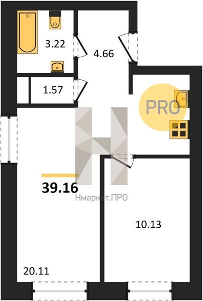 Квартира: 1 к 39,16 кв.м., 8 этаж в комплексе Progress Встречный, 1 очередь, корп.1 (секция 2), сдача: 1кв. , этажей: 20, адрес Екатеринбург г., Встречный пер., , Застройщик: Прогресс.