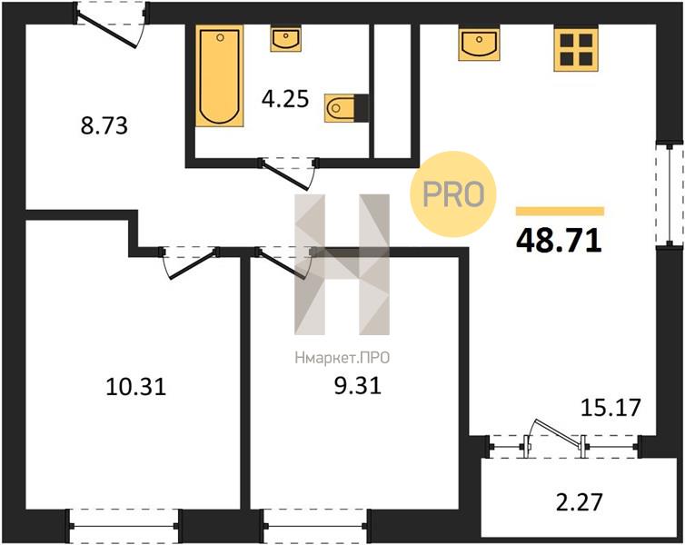 | Общая площадь: | 48.68 м2 |