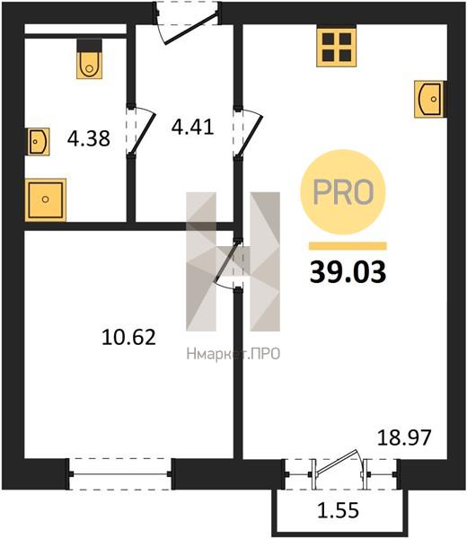 Квартира: 1 к 39,03 кв.м., 6 этаж в комплексе Progress Встречный, 1 очередь, корп.1 (секция 3), сдача: 1кв. , этажей: 20, адрес Екатеринбург г., Встречный пер., , Застройщик: Прогресс.