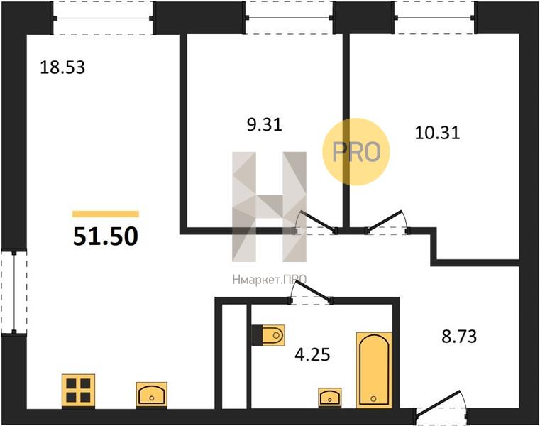 Квартира: 2 к 51,50 кв.м., 9 этаж в комплексе Progress Встречный, 1 очередь, корп.1 (секция 3), сдача: 1кв. , этажей: 20, адрес Екатеринбург г., Встречный пер., , Застройщик: Прогресс.