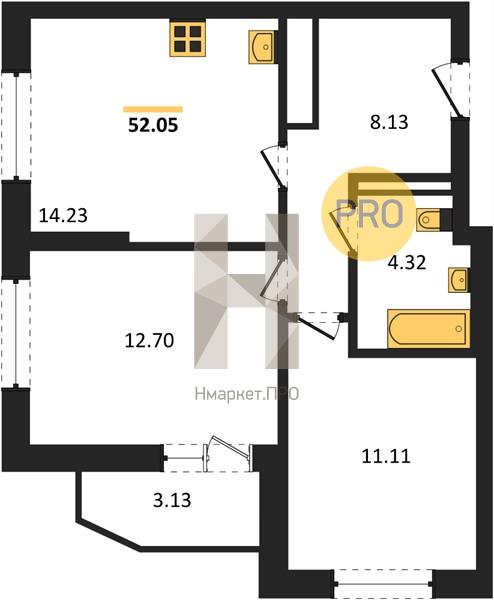 Квартира: 2 к 51,80 кв.м., 25 этаж в комплексе Самоцветы, 3 очередь, корп.1, сдача: 3кв. , этажей: 25, адрес Екатеринбург г., Яскина ул., д. 14/3, Застройщик: САМОЦВЕТЫ.