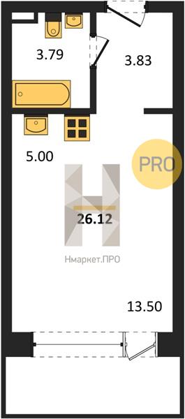 Купить 1-комнатную квартиру, 26.12 м2 № 6225870