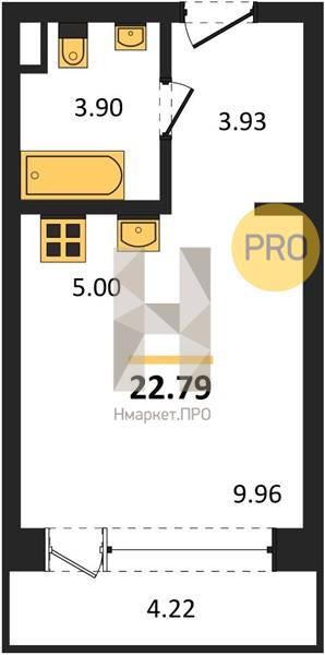 Апартамент: 1 к 22,79 кв.м., 2 этаж в комплексе Баден Баден Сысерть Панорама, 1 очередь, корп.1, сдача: 2кв. , этажей: 3, адрес Сысерть г., Загородная ул., д. 1, Застройщик: Baden Family.