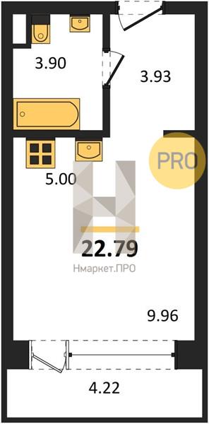 Апартамент: 1 к 22,79 кв.м., 2 этаж в комплексе Баден Баден Сысерть Панорама, 1 очередь, корп.1, сдача: 2кв. , этажей: 3, адрес Сысерть г., Загородная ул., д. 1, Застройщик: Baden Family.