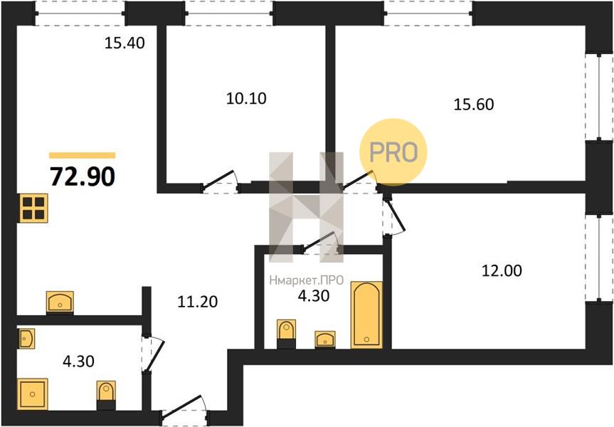 | Общая площадь: | 72.90 м2 |