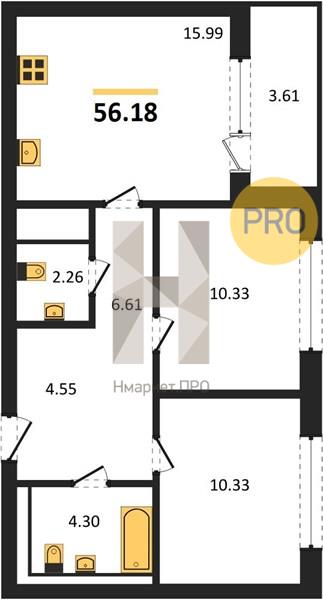 Квартира: 2 к 56,00 кв.м., 15 этаж в комплексе Солнечный, 3 очередь, корп.5.4 (1 корпус), сдача: 3кв. , этажей: 16, адрес Екатеринбург г., Вдохновения бул., д. 4, Застройщик: ГК ЭТАЛОН.