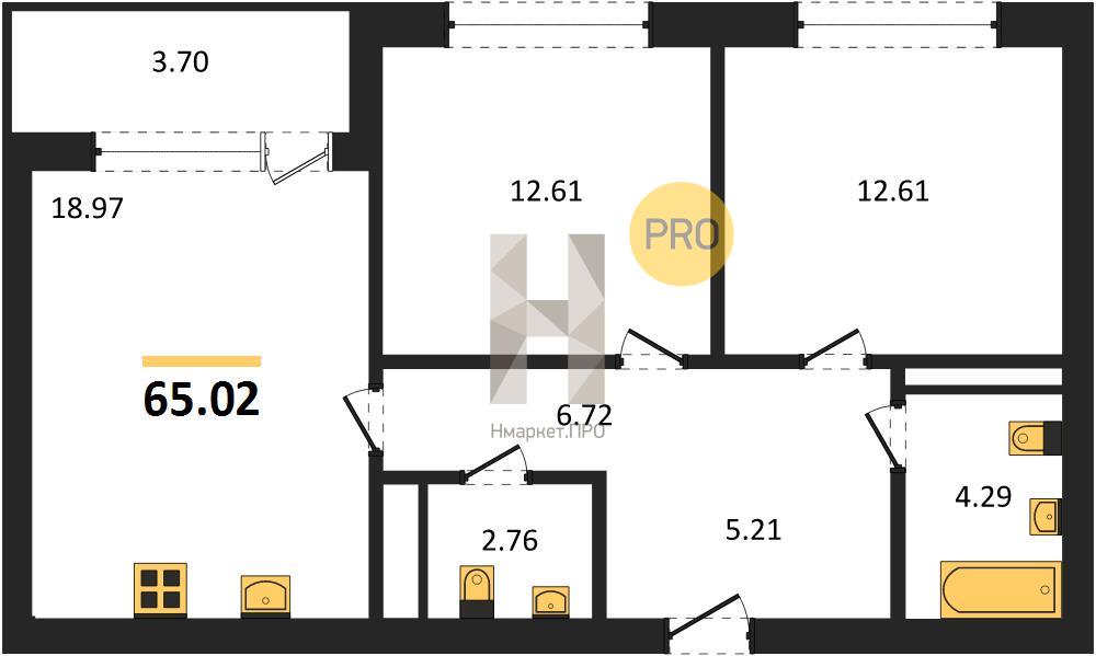 | Общая площадь: | 64.60 м2 |