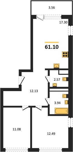 | Площадь кухни: | 17.30 м2 |