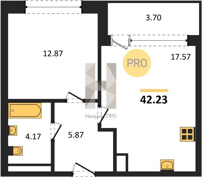 Квартира: 1 к 42,20 кв.м., 13 этаж в комплексе Солнечный, 2 очередь, корп.5.3, сдача: 3кв. , этажей: 16, адрес Екатеринбург г., Золотистый бул., д. 19, Застройщик: ГК ЭТАЛОН.