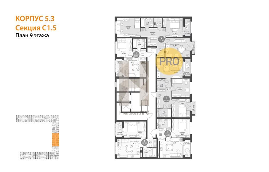 Квартира: 2 к 65,50 кв.м., 9 этаж в комплексе Солнечный, 2 очередь, корп.5.3, сдача: 3кв. , этажей: 16, адрес Екатеринбург г., Золотистый бул., д. 19, Застройщик: ГК ЭТАЛОН.